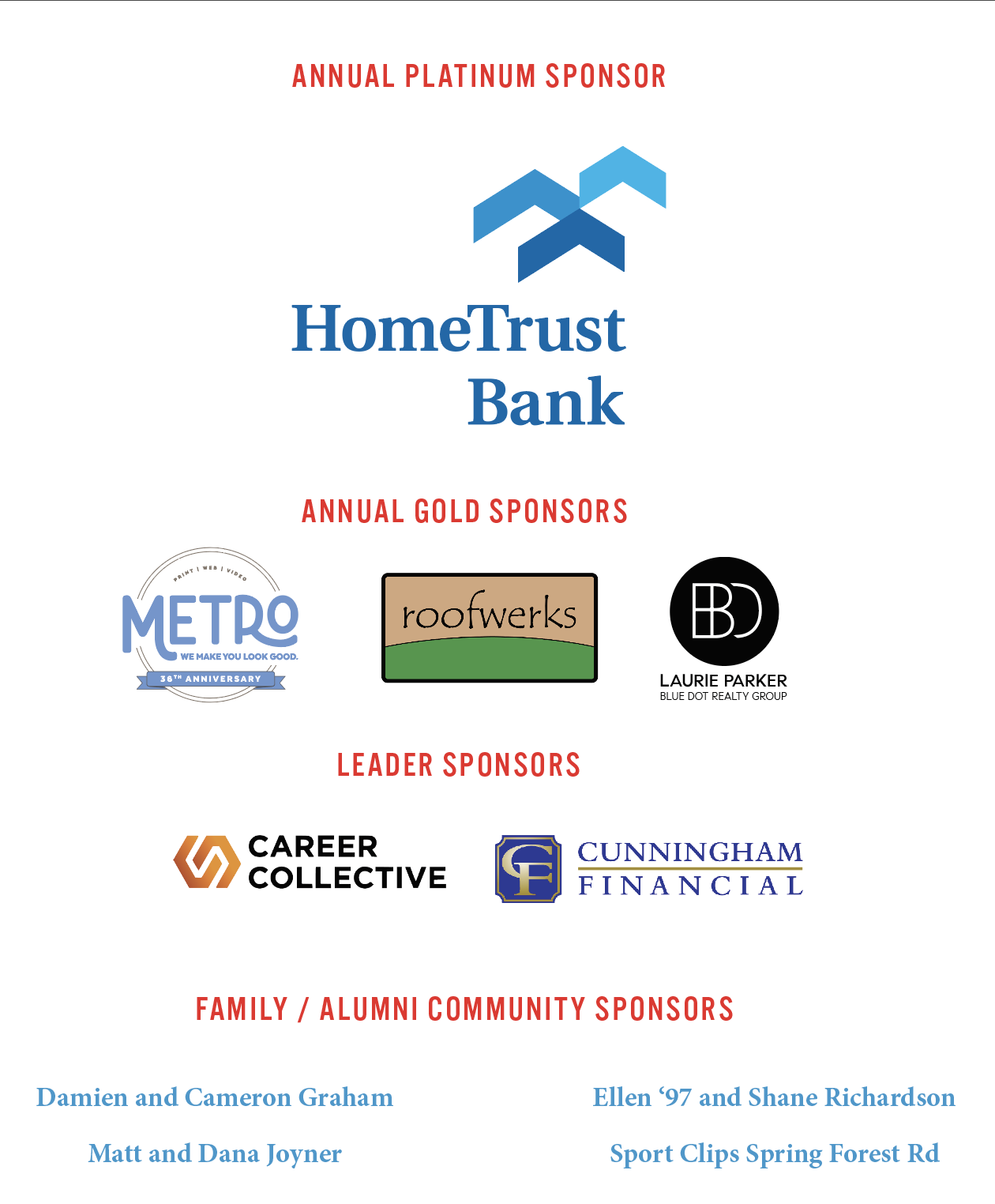 Click Here for Sponsor or Family/Alumni Supporter opportunities